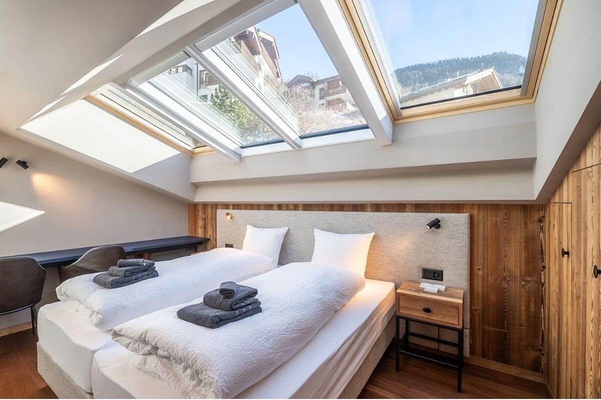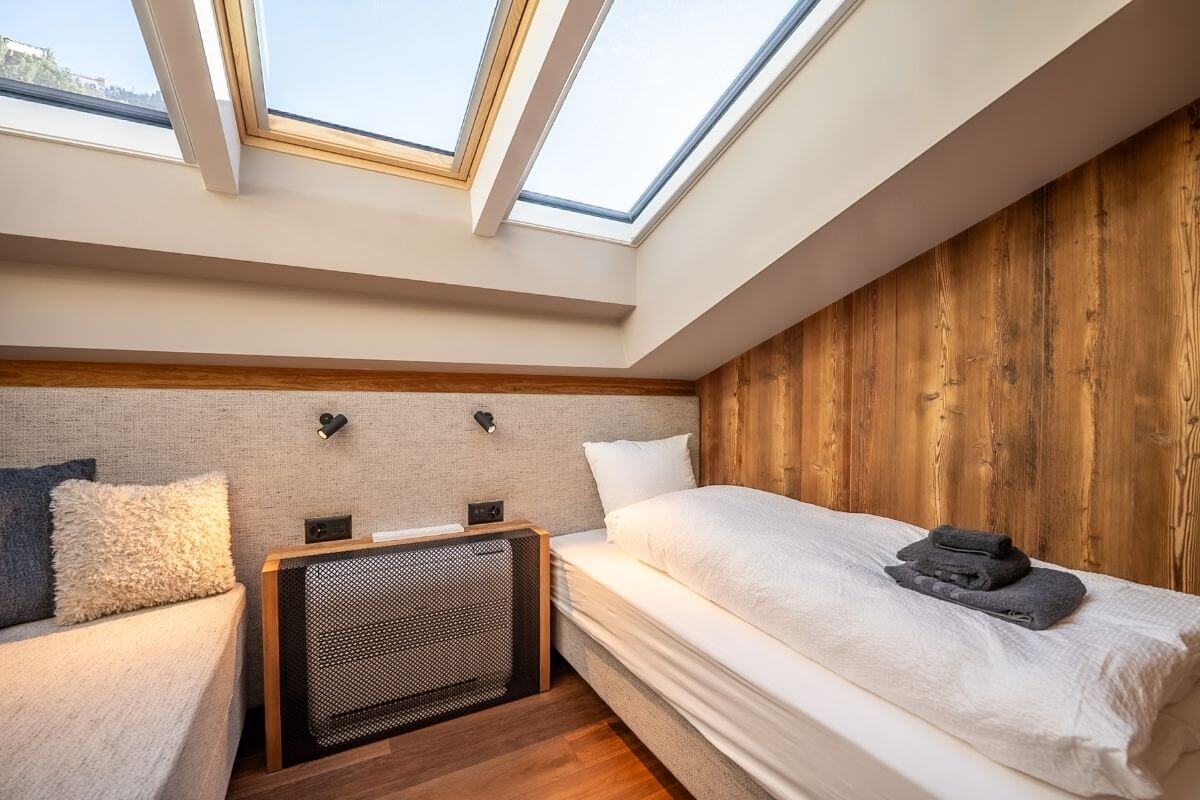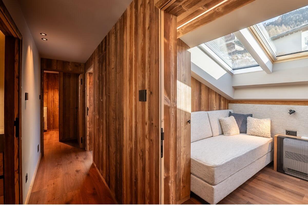 Perched above the rooftops of Zermatt, this 110 m² Alpine chic penthouse offers an unobstructed Matterhorn view and exceptional space for up to five guests. Enjoy open roof rafters, a crackling fireplace, and a sun-soaked balcony in a peaceful hillside setting, just minutes from the Sunnegga funicular.